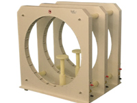 HM-3-900型線圈就是在亥姆赫茲線圈的基礎(chǔ)上,改進(jìn)后的三線圈亥姆赫茲線圈組,經(jīng)過計算模擬仿真實踐,三個線圈的半徑都為R時,中心線圈到兩個線圈的距離為0.7R, 中心線圈的匝數(shù)為兩邊線圈匝數(shù)的0.5倍,